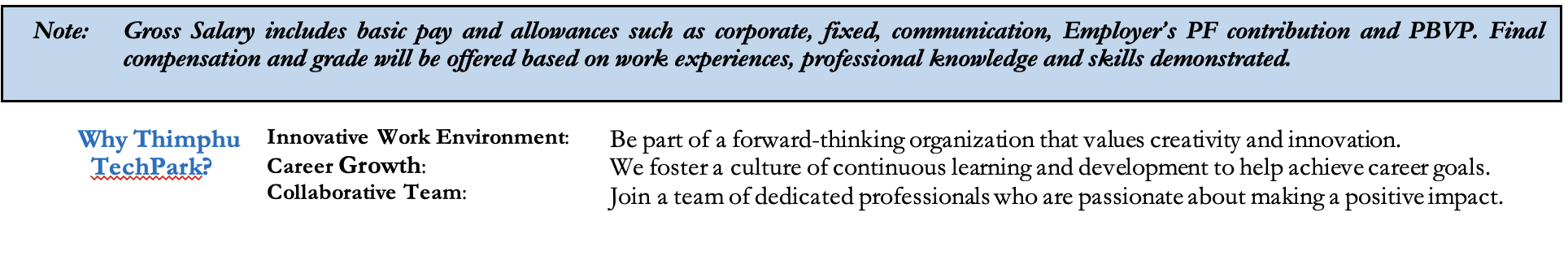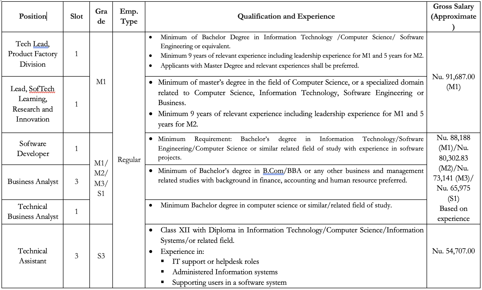 Prospective candidates must submit the application online through www.thegateway.bt on before 5:00 PM of 6th January, 2026. For queries, please contact the Human Resource Manager at 17541962 during office hours (9:00 AM – 5:00 PM)
