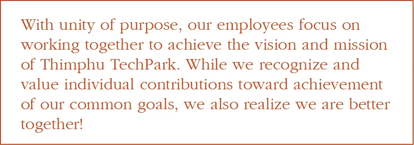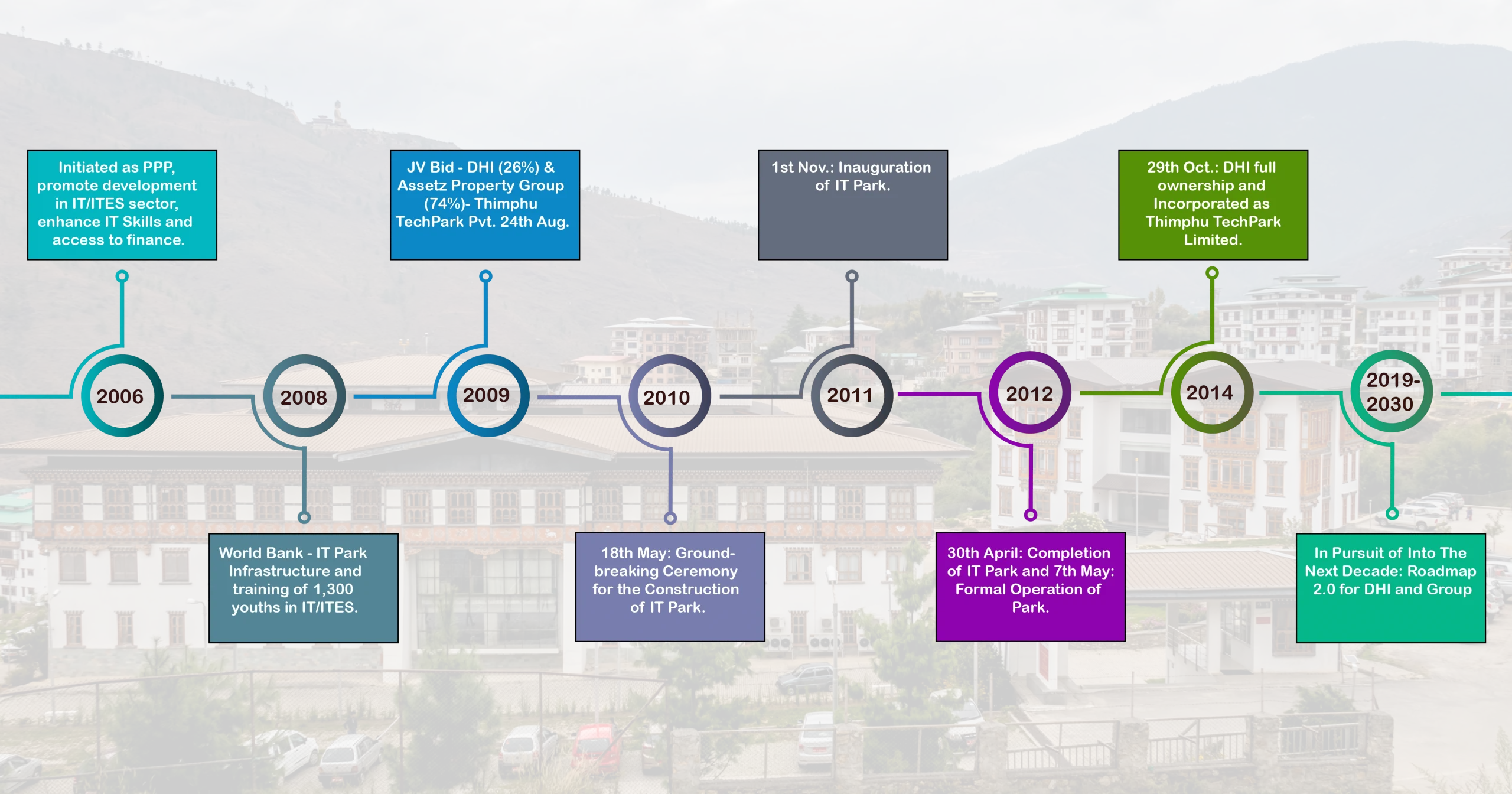 In a strategic move to enhance national digital capabilities, DHI assumed full ownership of the park, and the entity was officially incorporated as Thimphu TechPark Limited (TTPL) on 29th October 2014.